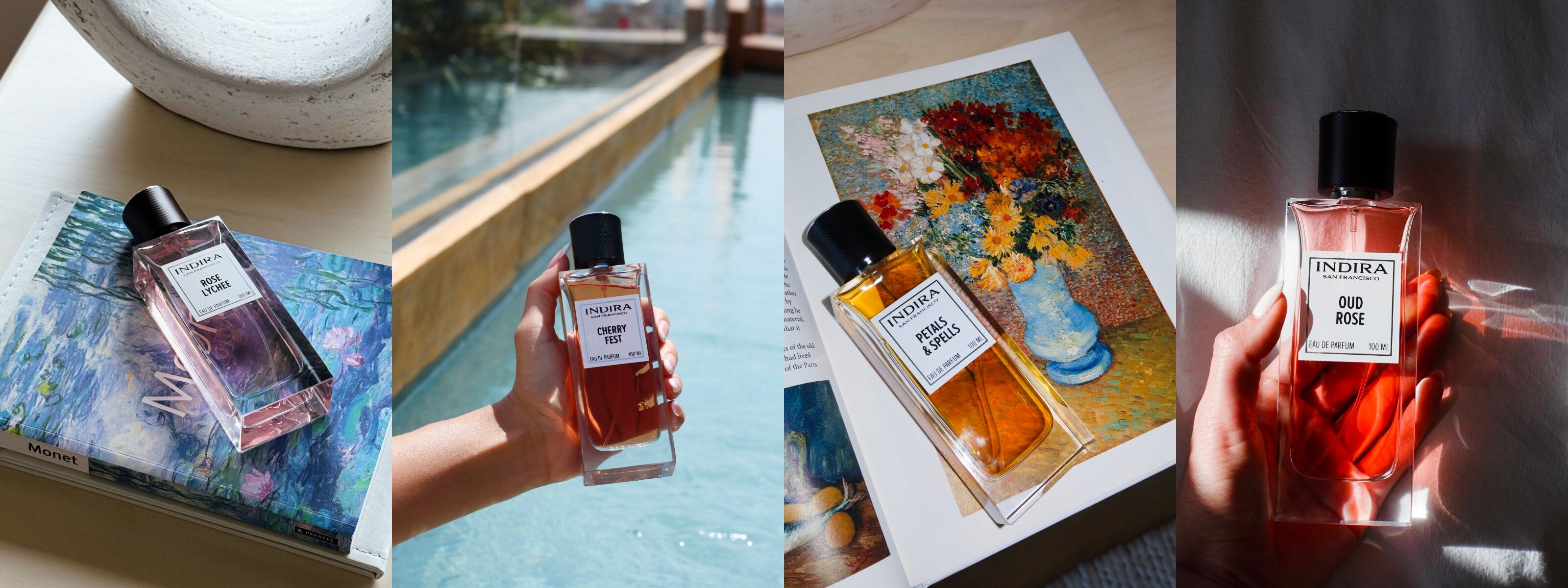 "Indira's Oud Rose brings depth and authority. A bold rose grounded in oud notes and warm woods, it adds richness and confidence to the everyday - reminder that structure doesn't dull your magnetism, it strengthens it."